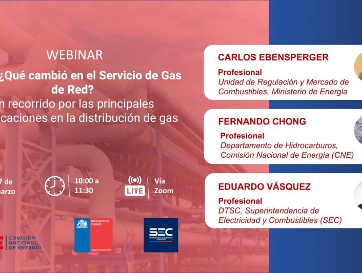 Invitamos a participar en el webinar “DS79: ¿Qué cambió en el Servicio de Gas de Red? Un recorrido por las principales modificaciones en la distribución de gas”, organizado por la Comisión Nacional de Energía (CNE) en conjunto con el Ministerio de Energía y la Superintendencia de Electricidad y Combustibles (SEC).